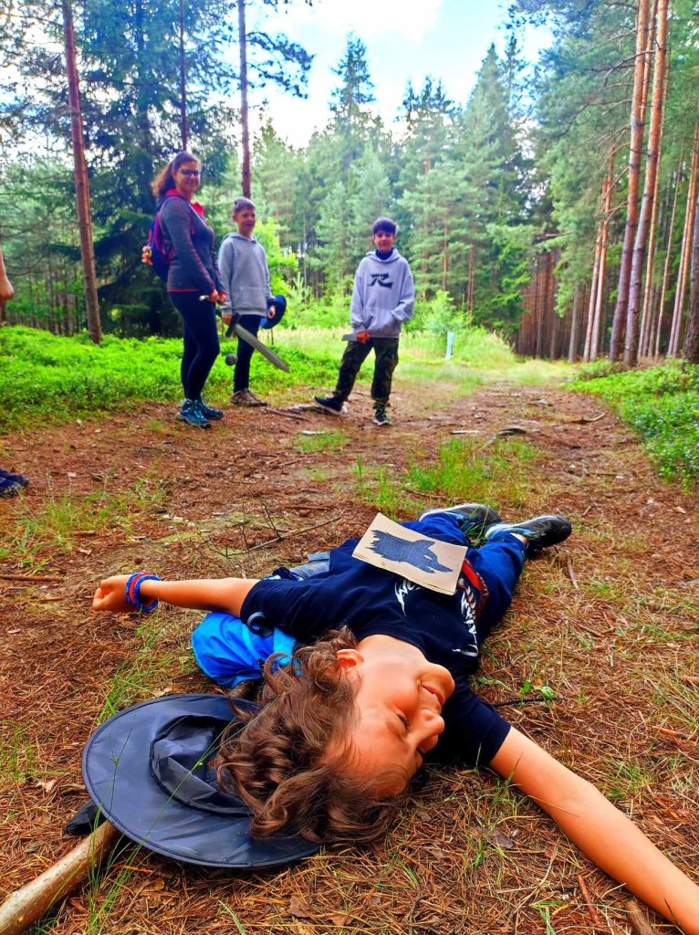 Po výborném obědě jsme si za vydělané peníze měli možnost zvýšit úroveň své postavy. Mistři nás naučili novou schopnost a museli jsme složit zkoušku abychom jí v příštích dnech mohli využívat. Lupiči si jejich schopnost – plížení vyzkoušeli hned odpoledne, kdy byla radě odcizena truhla s financemi. Museli jsme se pomalu plížit až do hnízda nebezpečných harpyjí, které truhlu ukradly a střežily jako oko v hlavě. Odměna od lorda Truscana nás neminula a večer nám ještě zbyl čas na vybíjenou a konečně první projížďky na lodičkách. Teď už se nám čte pohádka a Vám všem přejeme dobrou noc.