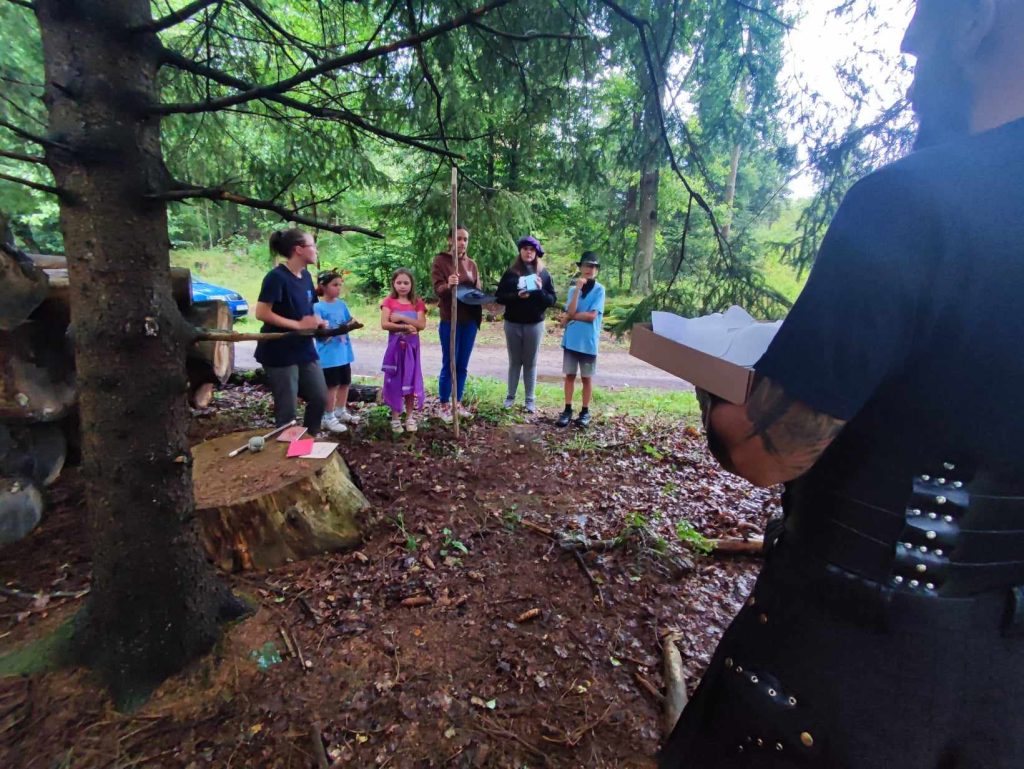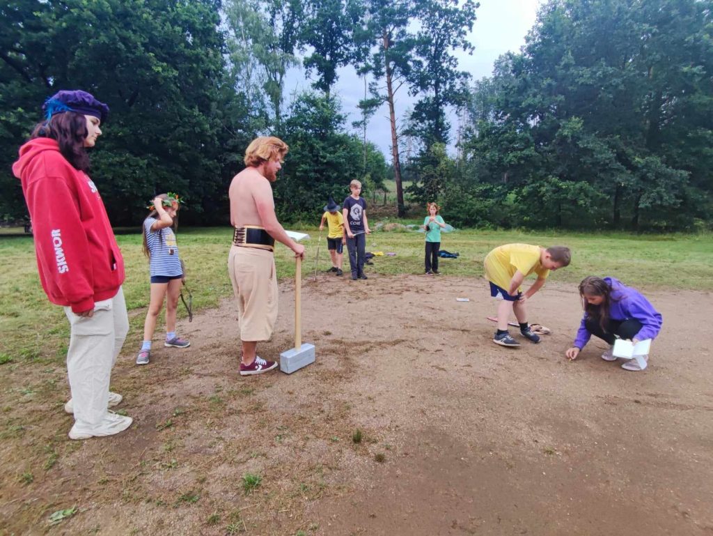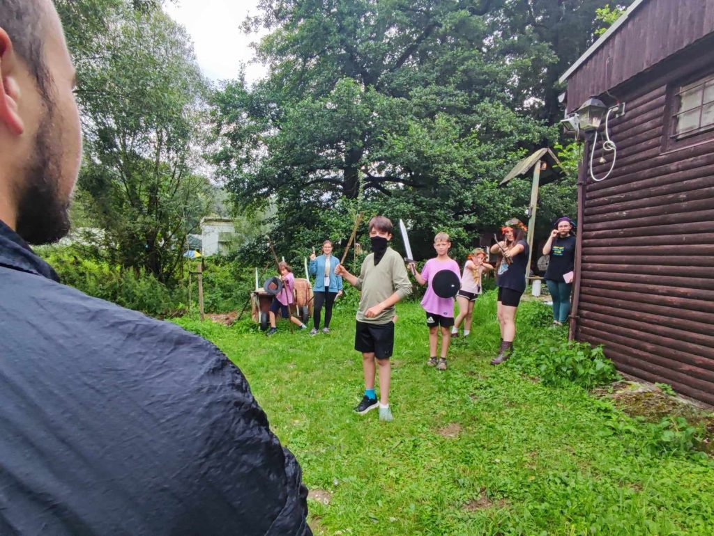 Večerní deště zdají se být tento rok již tradicí. Dnes nám však déšť překazil jen vylepšování našich postav a večerní nastup jsme museli urychlit. Celý den bylo hezky a hlavně teplo, možná až příliš. Mimo několika koupaček v řece se naše čtyři družiny vydaly po stopách artefaktů, které podle lorda Truscana stojí za špatnostmi a zlem probíhajícím v naší říši. Některé družiny si našly spojence, jiné naopak nahněvaly Babu Jagu. Všechny ovšem úspěšně získaly vše potřebné. Zbylé družiny se zúčastnily souboje Golemů, které si sami vytvořili. Odpoledne se v táboře cvičily ve svých schopnostech a boji. Pro artefakty vyrazí až zítra. Snad nebude jejich osudem celodenní déšť.