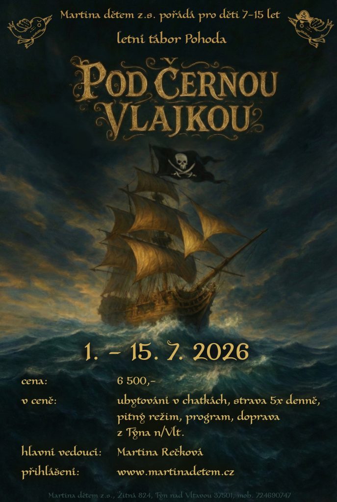 Pozor, na obzoru se rýsuje nejlepších 14 dní prázdnin! Máš doma malého dobrodruha mezi 7 a 15 lety, který se nebojí výzev? Letos vyplouváme Pod černou vlajkou! 🏴☠️